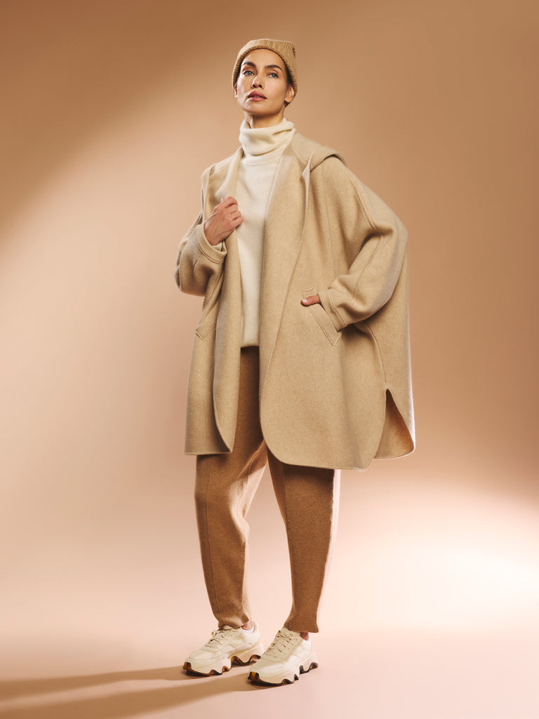 Oversized Cashmere Double-Knit Hooded Half Coat